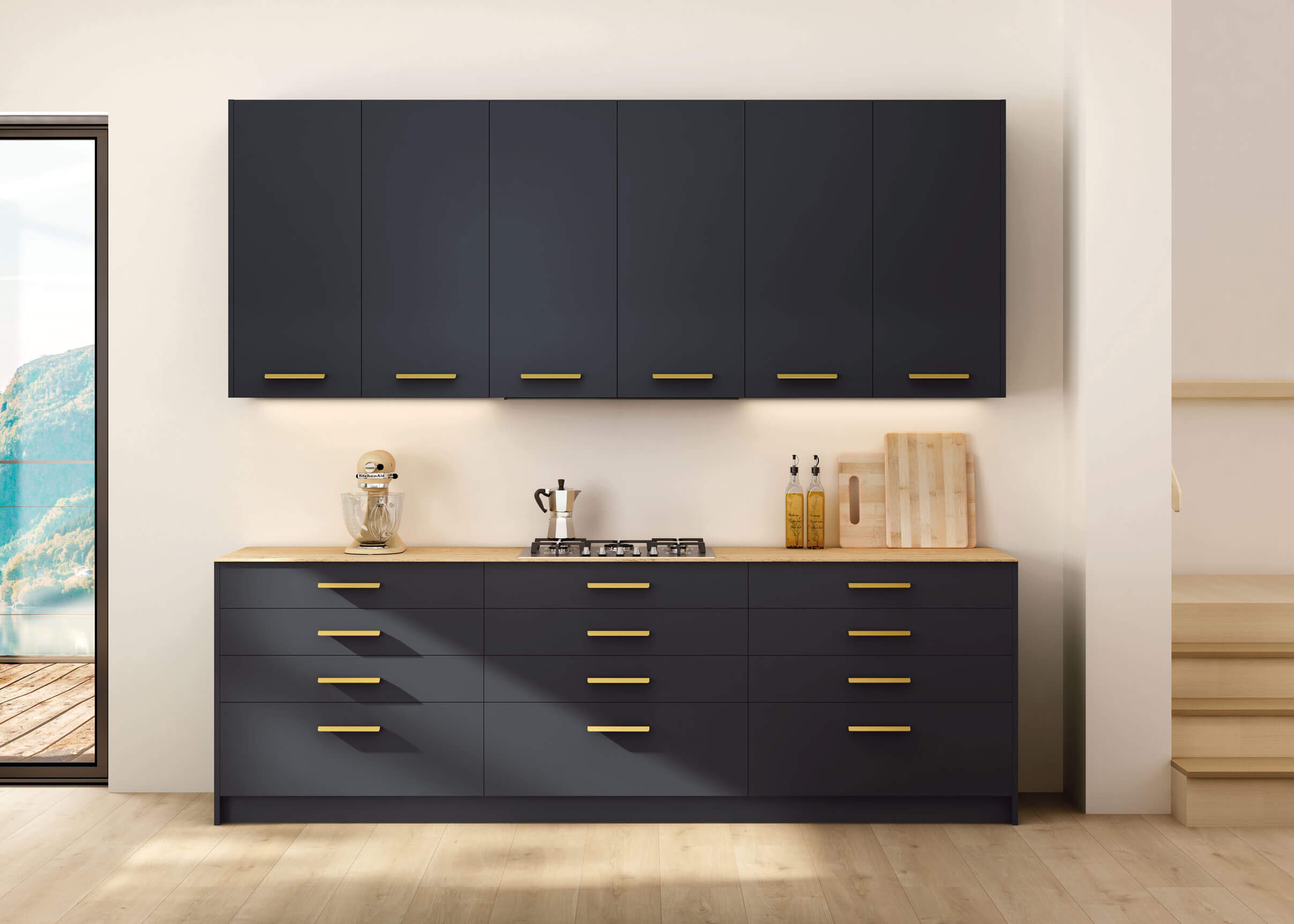 El armazón de roble claro realza la riqueza del color del diseño y los tiradores de latón le aportan un detalle personal.