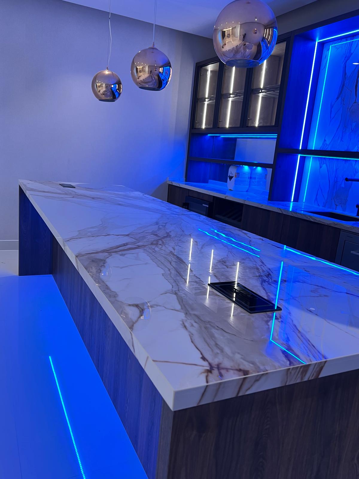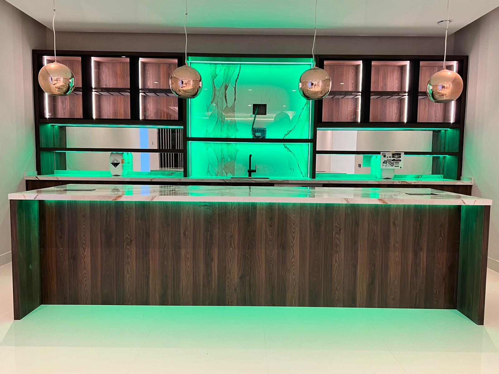 Materiales nobles, iluminación inteligente y un diseño impecable.